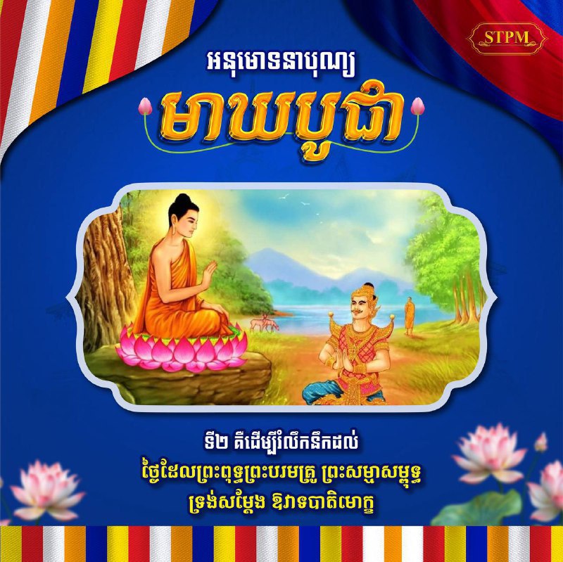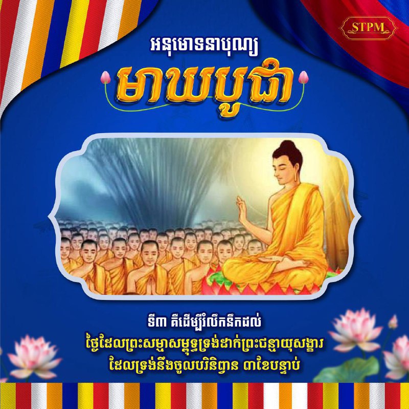 នៅថ្ងៃចន្ទ ១៥ កើតខែមាឃឆ្នាំម្សាញ់សប្តស័កពុទ្ធសករាជ ៣៥៦៩ ត្រូវត្រូវនឹងថ្ងៃទី ២ខែកុម្ភៈឆ្នាំ 2026 ជាថ្ងៃសីលនិងពេញបូណ៌មីនិងជាថ្ងៃពិធីបុណ្យមាឃបូជា ប្រារព្ធឡើងដោយសារហេតុ ៣យ៉ាង៖