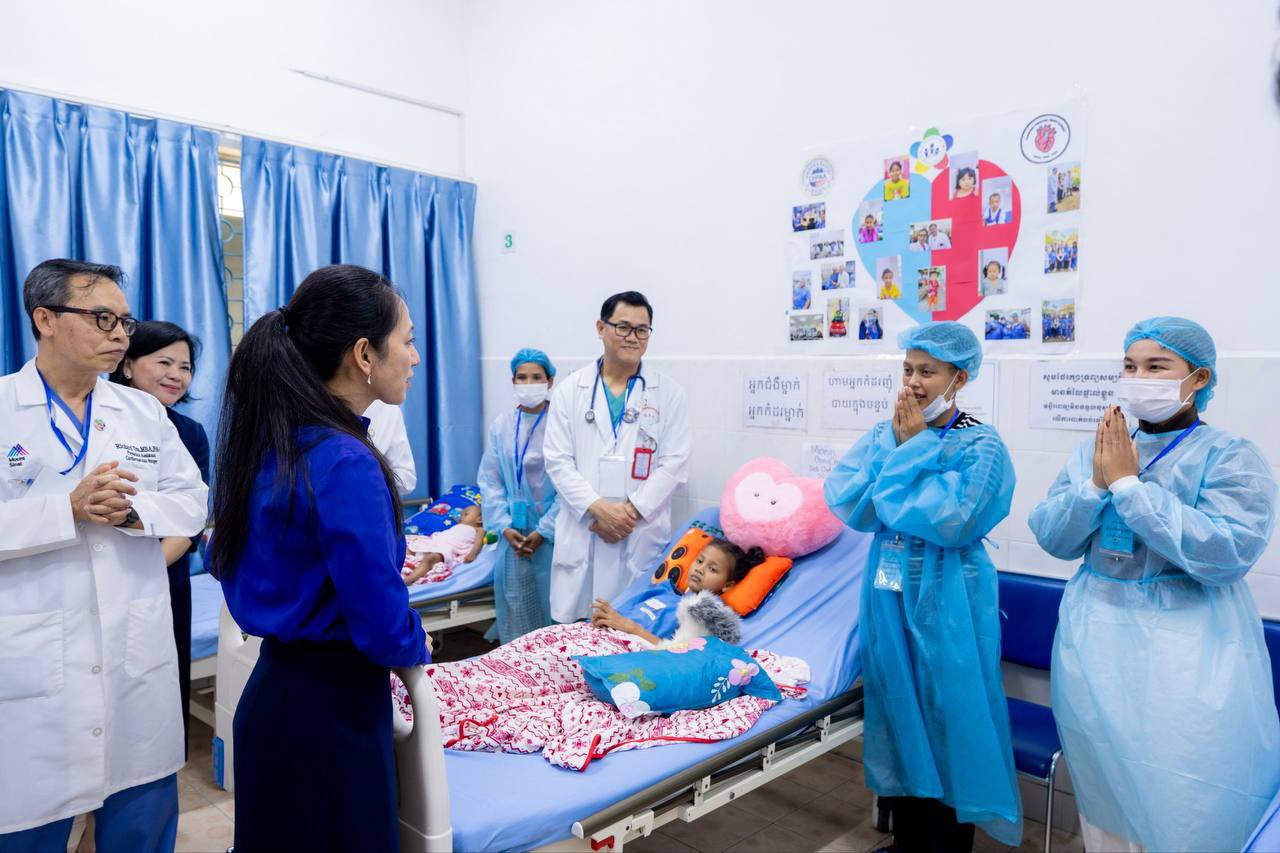 រាជធានីភ្នំពេញ:លោកជំទាវបណ្ឌិត ពេជ ចន្ទមុន្នី ហ៊ុនម៉ាណែត បានអញ្ជើញមកមន្ទីរពេទ្យកុមារជាតិដើម្បីពិនិត្យវឌ្ឍនភាពគម្រោងវះកាត់បេះដូងកុមារ ដែលជាកិច្ចសហប្រតិបត្តិការរវាងមន្ទីរពេទ្យកុមារជាតិ និងសមាគមសុខាភិបាលខ្មែរនៅអាមេរិក (CHPAA) ។ គម្រោងដ៏វិសេសវិសាលនេះ ត្រូវបានបង្កើតឡើង និងអនុវត្តក្នុងគោលបំណងជួយព្យាបាលដល់កុមារទាំងឡាយដែលមានជំងឺបេះដូងពីកំណើត រួមទាំងជំងឺបេះដូងផ្សេងៗ តាមរយៈព្យាបាលវះកាត់ដោយមិនគិតថ្លៃ ដើម្បីផ្តល់មកវិញនូវសុខុមាលភាព និងជិវិតដ៏ត្រចះត្រចង់ ដល់កុមារកម្ពុជា។ គម្រោងនេះ ក៏ជួយបណ្តុះបណ្តាលបន្ថែមតាមរយៈការផ្លាស់ប្តូរបទពិសោធន៍គ្នាទៅវិញទៅមករវាងវេជ្ជបណ្ឌិតកម្ពុជា និងវេជ្ជបណ្ឌិតអាមេរិក ការជួយទ្រទ្រង់ផ្នែកឧបករណ៍បច្ចេកទេសវះកាត់ និងការជួយគាំទ្រផ្នែកស្មារតីគ្នាជាដើម។