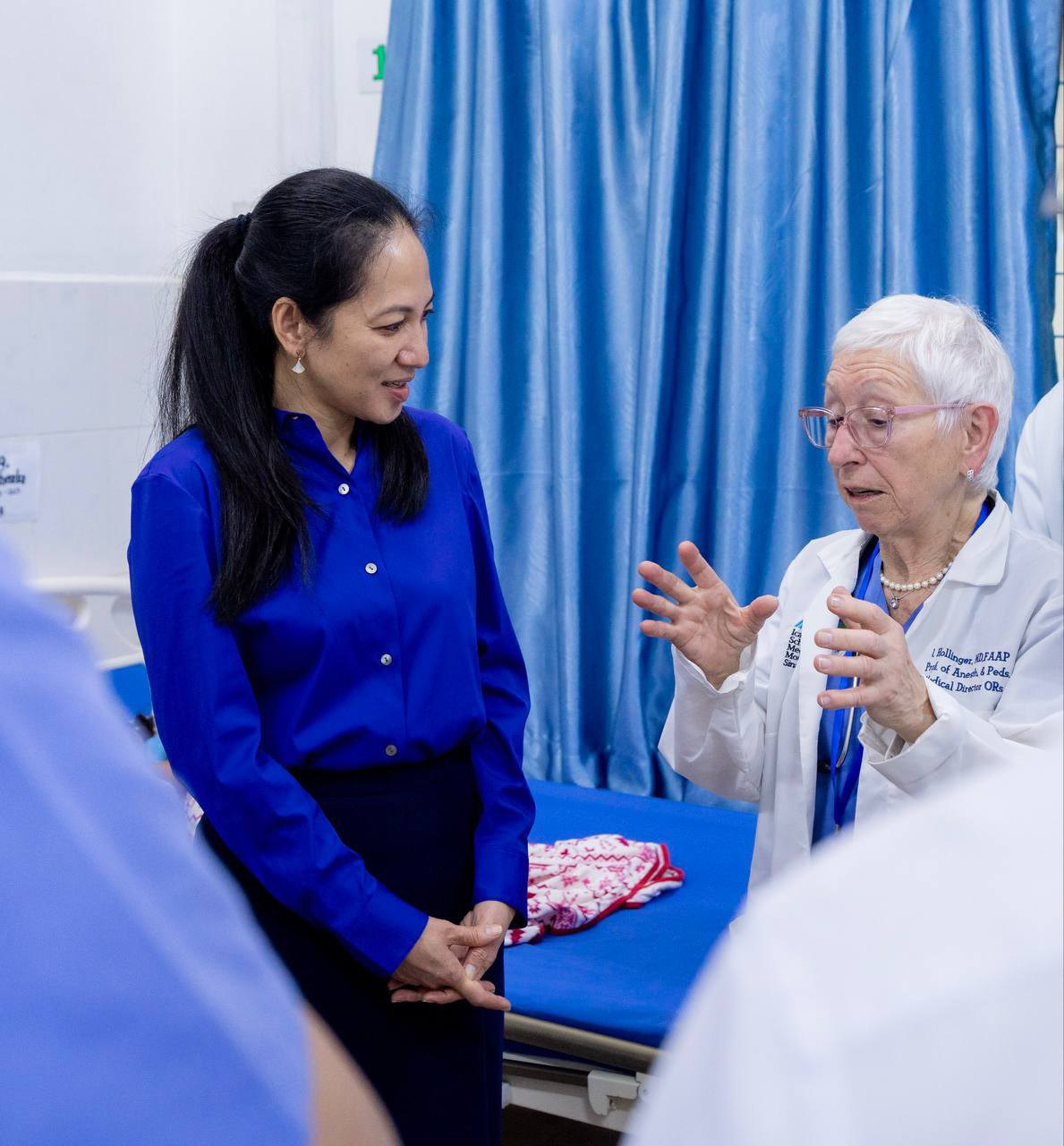 ឆ្លៀតក្នុងវេលានេះ លោកជំទាវបណ្ឌិត បានអញ្ជើញសួរសុខទុក្ខកុមារដែលកំពុងសម្រាកព្យាបាលជំងឺ ដោយ លោកជំទាវបណ្ឌិត បានភ្ជាប់មកជាមួយប្រសាសន៍សួរសុខទុក្ខ និងជូនពរដ៏ខ្ពង់ខ្ពស់របស់ សម្តេចអគ្គមហាសេនាបតីតេជោ ហ៊ុន សែន សម្តេចកិត្តិព្រឹទ្ធបណ្ឌិត ប៊ុន រ៉ានី ហ៊ុនសែន ព្រមទាំង សម្តេចមហាបវរធិបតី ហ៊ុន ម៉ាណែត ផងដែរ។ លោកជំទាវបណ្ឌិត ថែមទាំងបានជួបសំណេះសំណាលជាមួយក្រុមគ្រូពេទ្យ គិលានុបដ្ឋាក បុគ្គលិកមន្ទីរពេទ្យ រួមទាំងក្រុមគ្រូពេទ្យស្ម័គ្រចិត្តរបស់សមាគមសុខាភិបាលខ្មែរនៅអាមេរិក (CHPAA) ដែលកំពុងបម្រើការក្នុងគម្រោងនេះ។