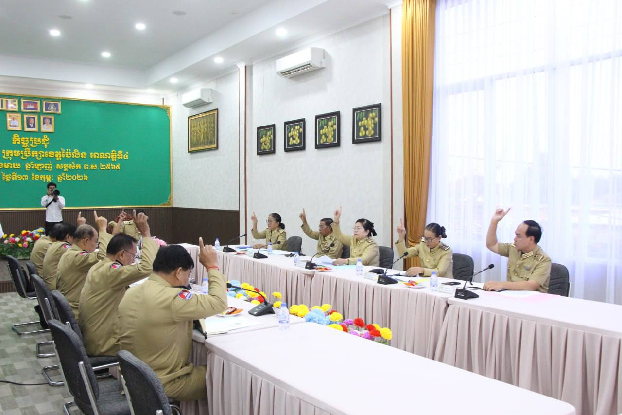 ប៉ៃលិន៖ នាព្រឹកថ្ងៃទី១៣ ខែកុម្ភៈ ឆ្នាំ២០២៦ ក្រុមប្រឹក្សាខេត្តប៉ៃលិន បានបើកកិច្ចប្រជុំសាមញ្ញលើកទី២១ អាណត្តិទី៤ របស់ខ្លួន ស្ថិតក្រោមអធិបតីភាព ឯកឧត្តម ជាចាន់ឌិន ប្រធានក្រុមប្រឹក្សាខេត្ត និង លោកជំទាវបណ្ឌិត បាន ស្រីមុំ អភិបាលនៃគណៈអភិបាលខេត្តប៉ៃលិន ព្រមទាំងមានការចូលរួមពីសំណាក់ឯកឧត្តម លោកជំទាវសមាជិកក្រុម ប្រឹក្សាខេត្ត, គណៈអភិបាលខេត្ត នាយក នាយករងរដ្ឋបាលខេត្ត នាយកទីចាត់ការ លោក-លោកស្រី ប្រធានមន្ទីរអង្គភាព ស្ថាប័នជុំវិញខេត្ត និងអាជ្ញាធរក្រុង-ស្រុក ជាច្រើននាក់ផងដែរ។